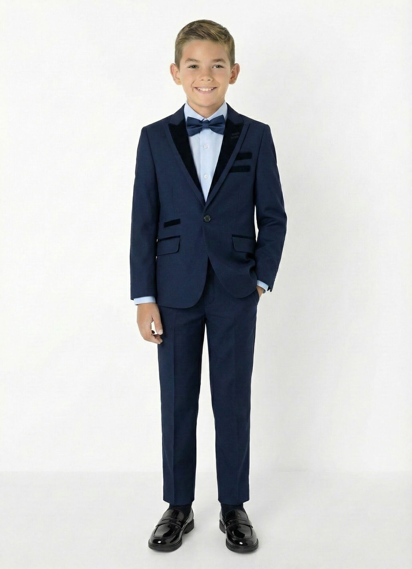 Monte Carlo Navy Boys 2-Piece Suit with Black Velvet Lapels – Jacket & Trousers | Lucys