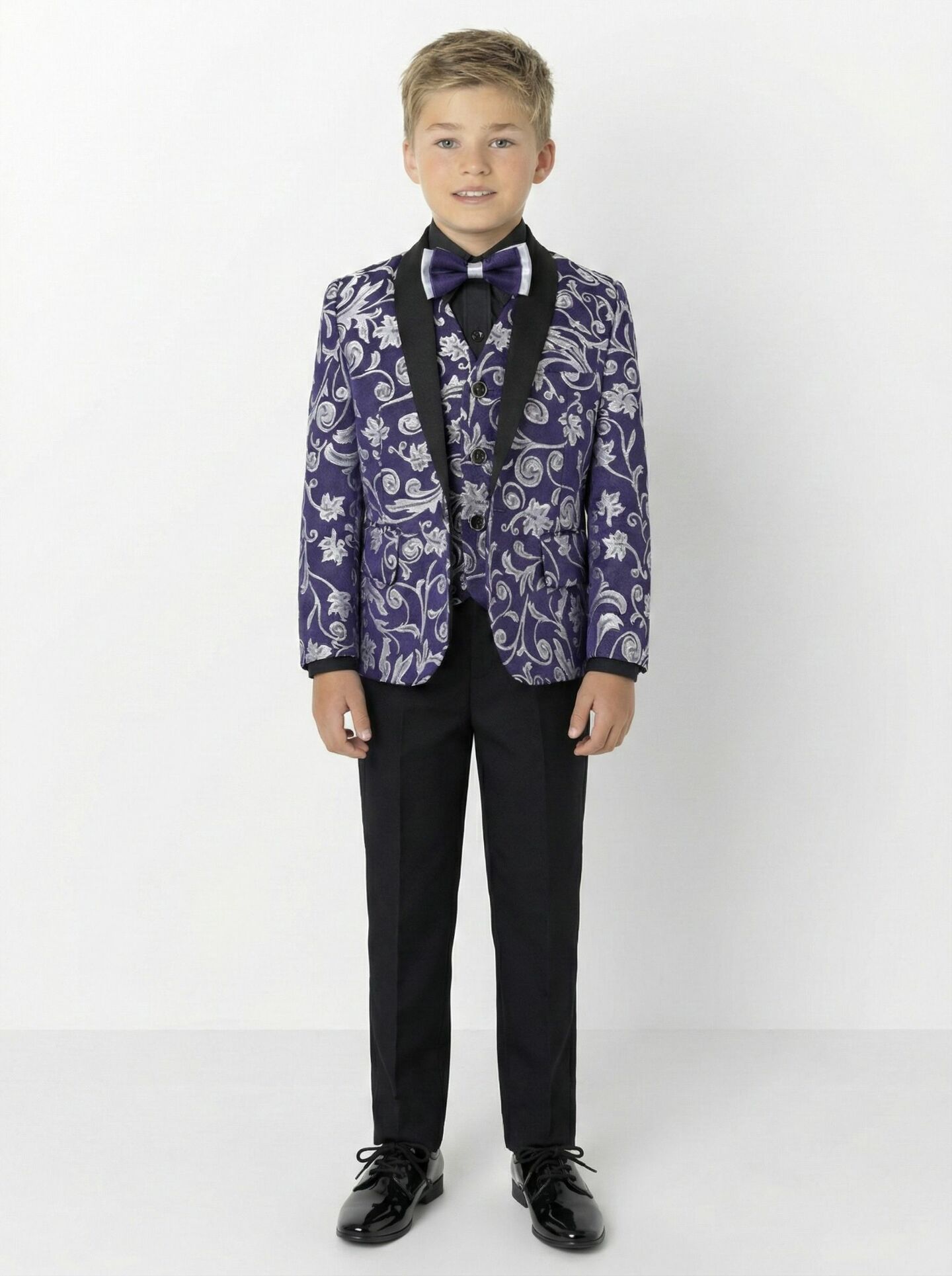 Robert Dark Purple Jacquard 3-Piece Boys Formal Suit Jacket, Waistcoat & Trousers | Lucys