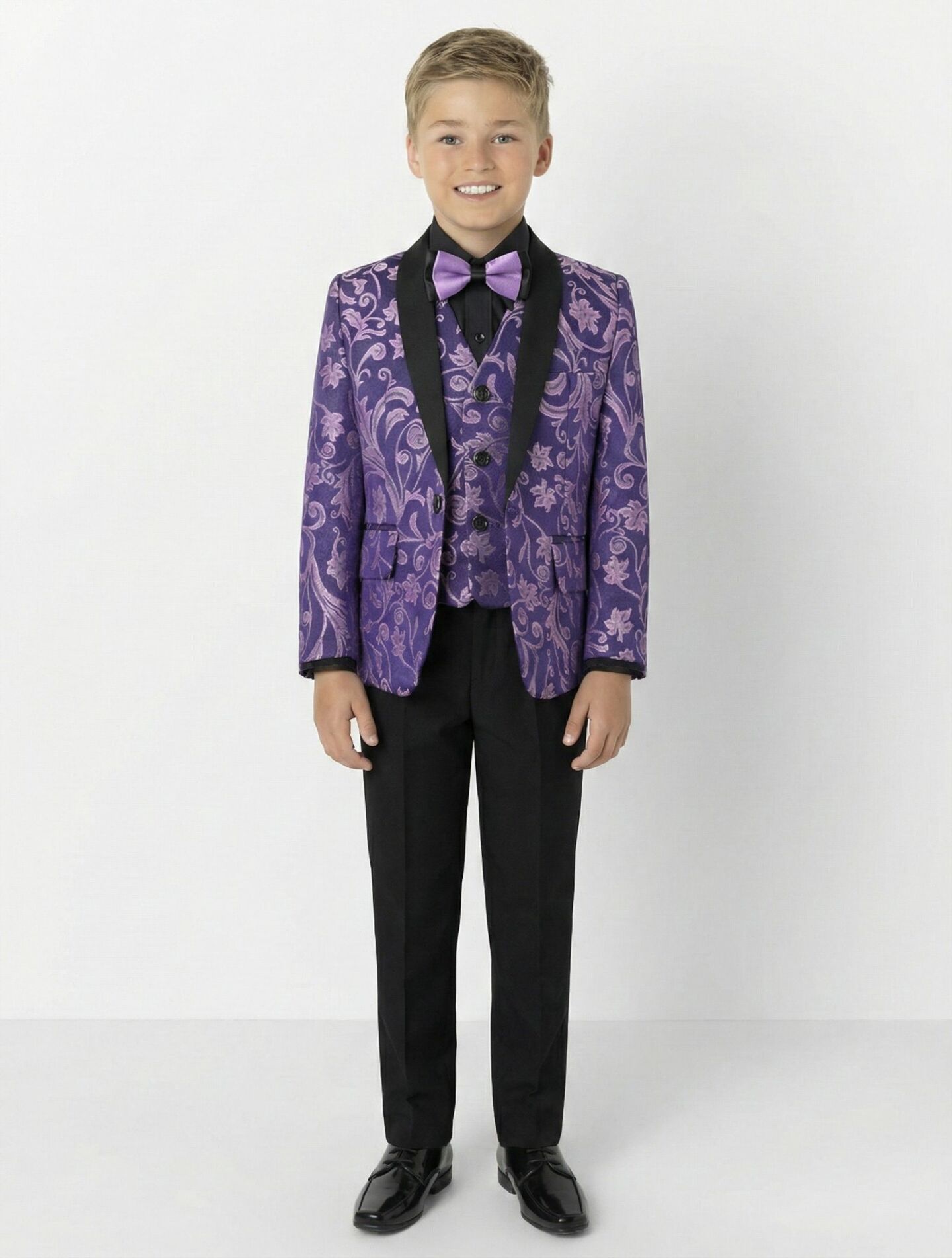 Robert Purple Jacquard 3-Piece Boys Formal Suit Jacket, Waistcoat & Trousers | Lucys