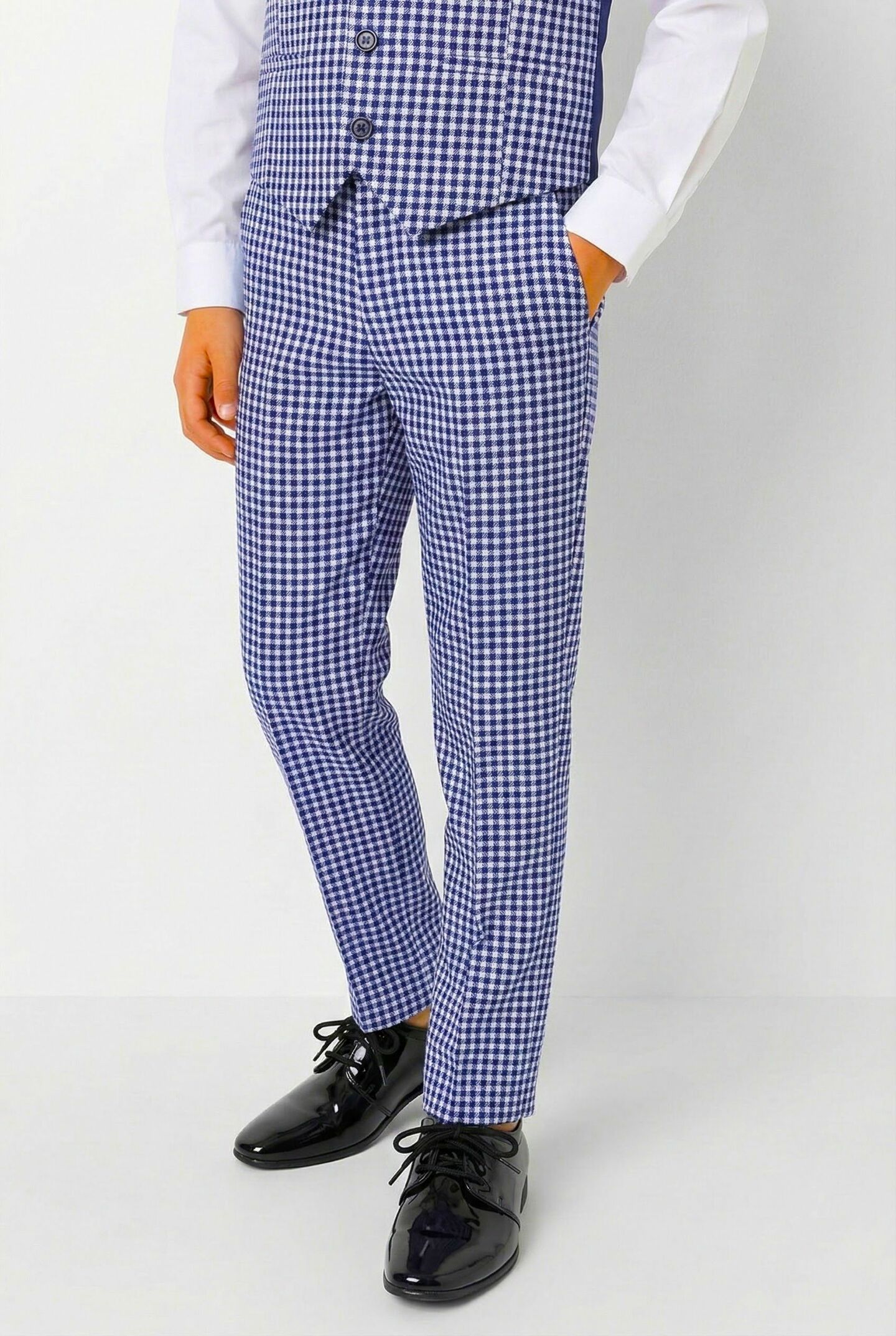 Roger Blue Gingham Check Boys Formal Dress Trousers | Lucys
