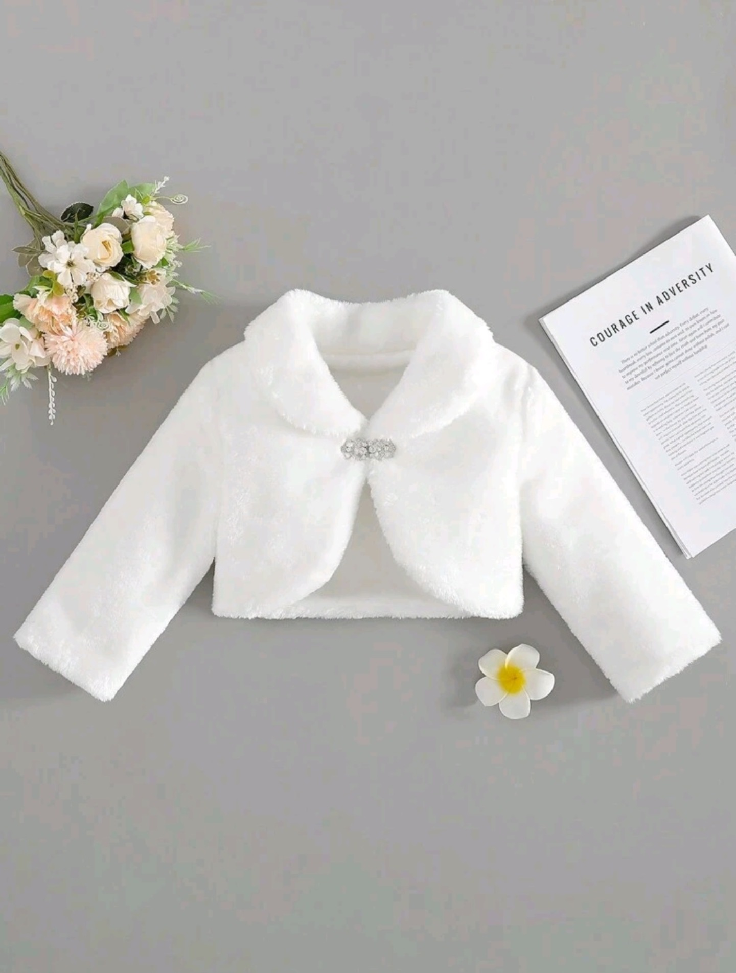Young Girl's Furry Long Sleeve Shawl Jacket - Cara (White)